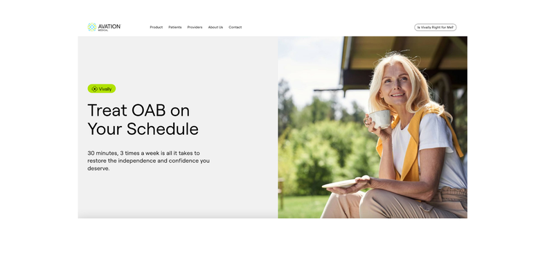 Avation.com • 7th April 2025 Avation Medical Avation Medical rebranded itself to launch the first, FDA-cleared, wearable at-home treatment for overactive bladder. I rewrote the website by working with Durham Design.