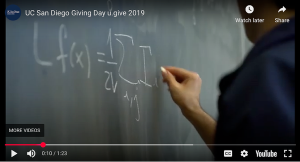 UCSD • 27th June 2019 UCSD Giving Day In order to build awareness for UCSD's first-ever Giving Day, we created a video. I had only an hour to write a script. I utilized the "Every Minute" theme by showcasing the dynamism of UCSD with language that was both inspiring and playful.